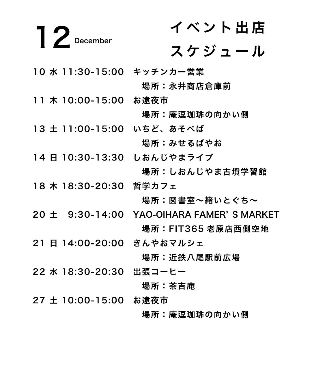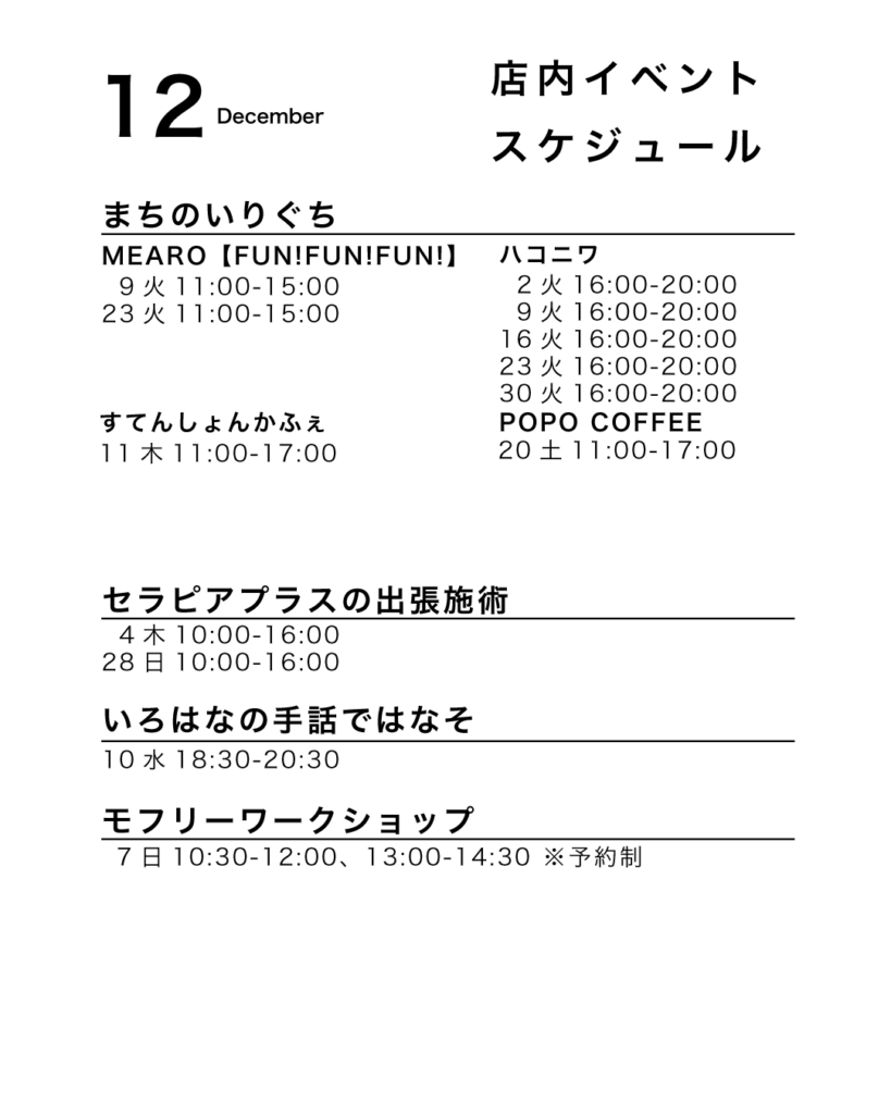 12月 営業日・イベント・まちのいりぐちのお知らせ